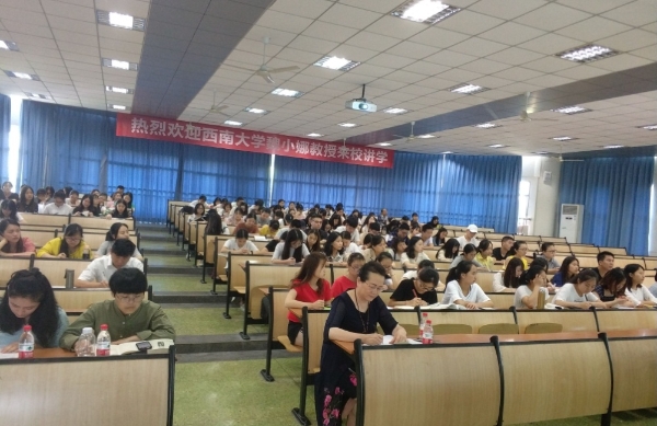 6月9日下午,西南大学文学院硕导魏小娜教授应邀来beat365官网举办了题为“阅读策略:理论探索与实践运用”的学术讲座。院长李天福丶院长助理王长武、语文教研室主任李东平、中文系部分老师,以及160多名汉文师范专业学生到会聆听。