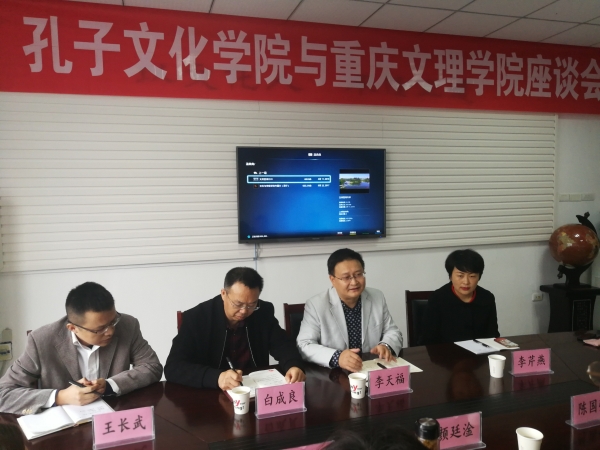 为弘扬中华传统文化,倡导经典阅读,提高大学生人文素质,本月14日,曲阜孔子文化学院颜廷淦院长、彭爱英老师以及西南分院张馨尹院长、重庆纳德集团副总经理陈国强一行莅临beat365官网开展合作交流。学院院长李天福、党总支书记白成良、副院长李芹燕、院长助理王长武参加了座谈交流活动。