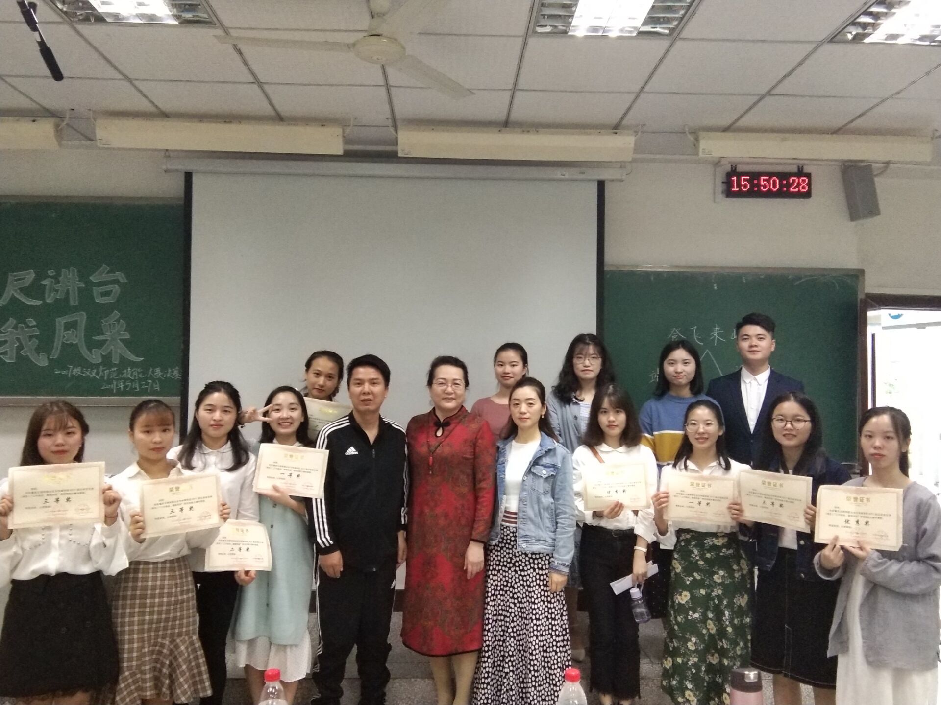 为进一步增强beat365官网师范生基本技能的掌握和创新,彰显师范生的特色,强化学生教学技能,5月29日,由重庆文理学院教学部主办,文化与传媒学院中文系承办的2017级汉语言文学师范专业“三尺讲台,展我风采”师范技能大赛决赛成功在知津楼D205举办。本次比赛由语文教育教研室主任李东平、刘光明老师以及刘海燕老师担任评委,2017级汉语言文学师范专业的全体同学观看了本次比赛。