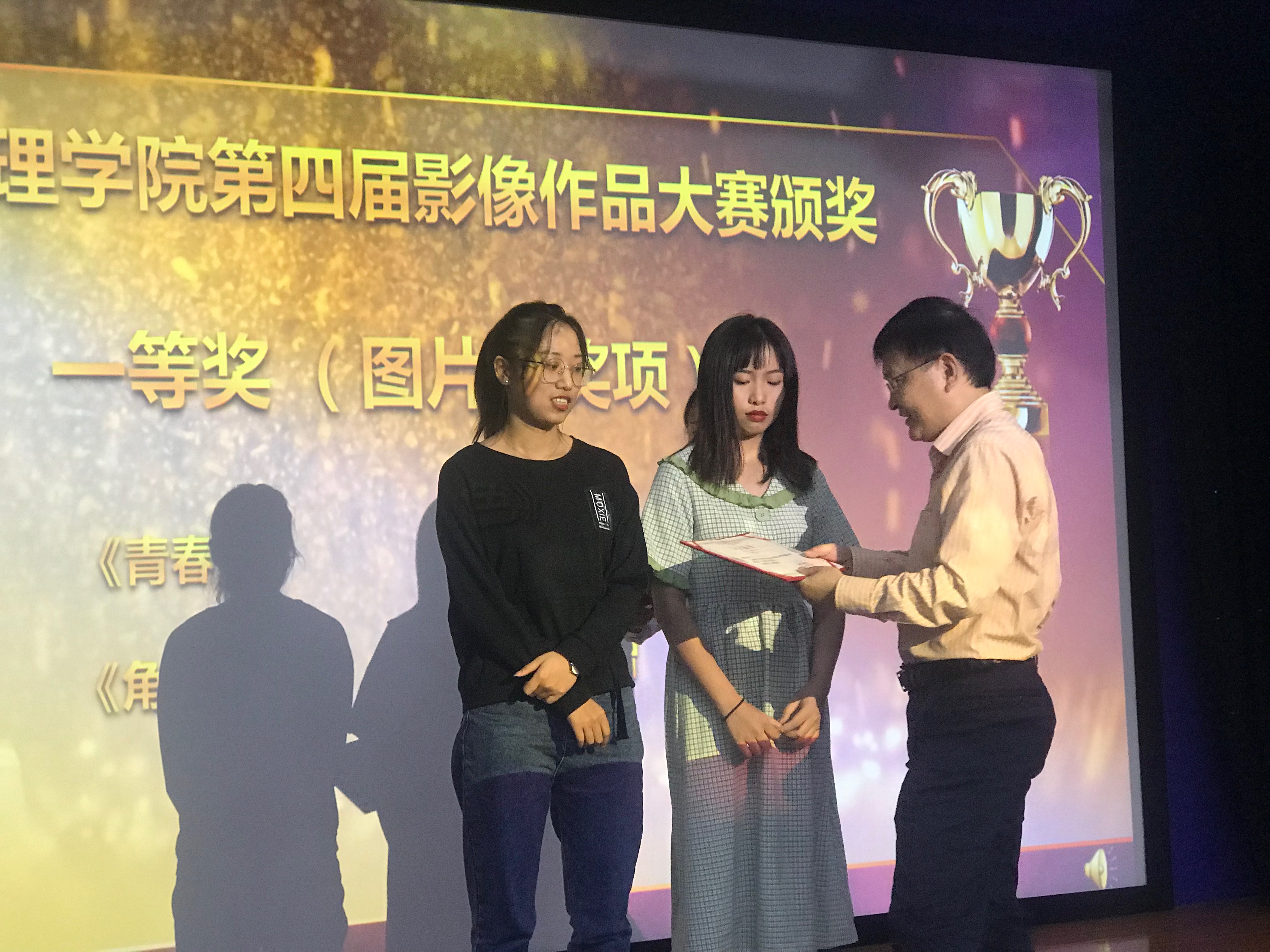 随后,颁奖典礼浓重举行。校台领导和老师代表联合对获奖的视频类、图片类作品进行颁奖。主持人陈美俊、管灿公布了获奖名单。