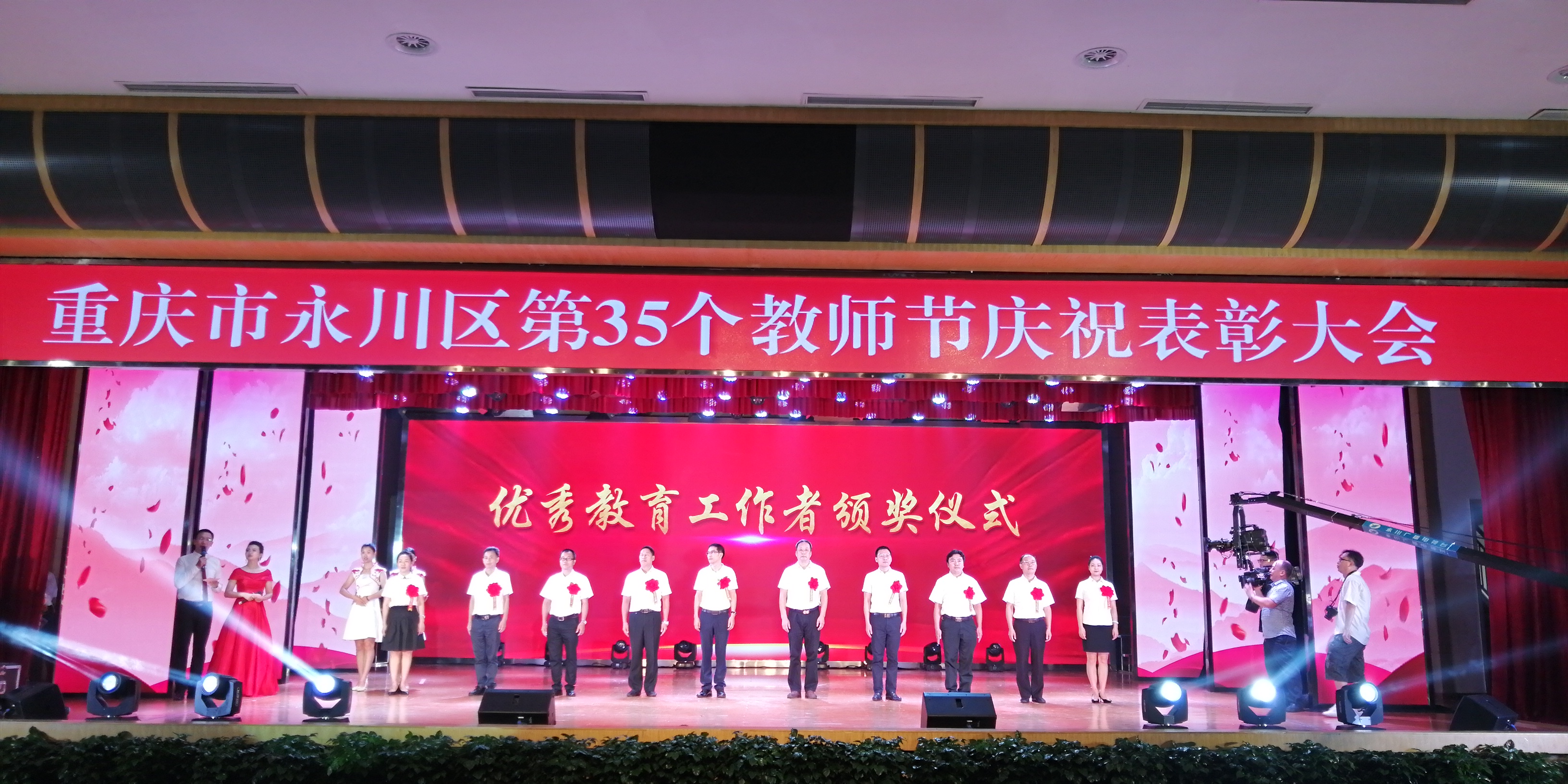 据悉,永川区区委书记滕宏伟、区政协主席刘祥全等区领导出席了此次大会,副校长谭宏带领我校5位获奖教师参加了大会。