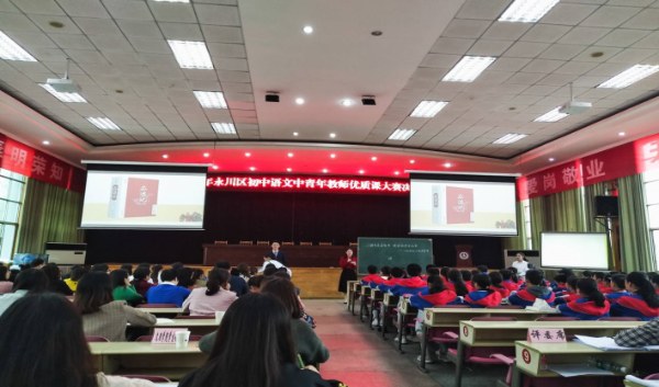 2019年10月14日至15日在永川中学老校区毓秀楼学术报告厅举行2019年永川区初中语文中青年教师优质课大赛,beat365官网2017级中文系学生在刘光明副教授带领下于两日下午分批前往观摩学习。