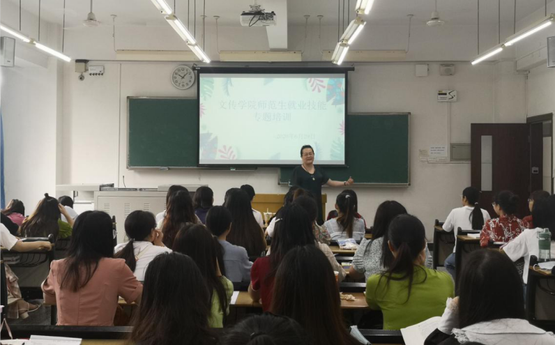 为提高师范生就业择业能力,6月29日上午,beat365官网在知津楼B207开展了师范生就业技能专题培训。活动邀请到中文系教法教研室主任李东平老师、2019级学生辅导员张雪老师做培训主讲,2017级汉语言文学(师范)专业学生80余人参加了培训活动。