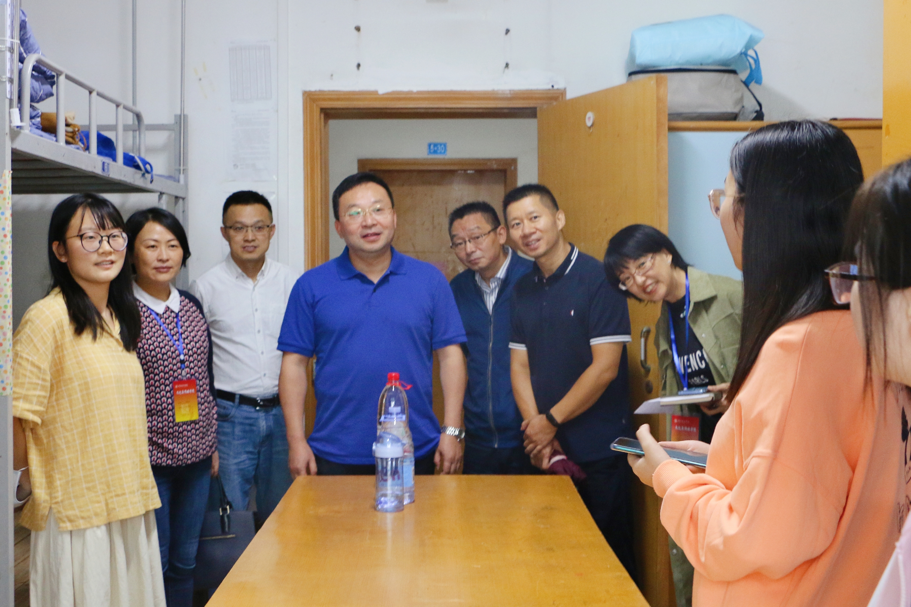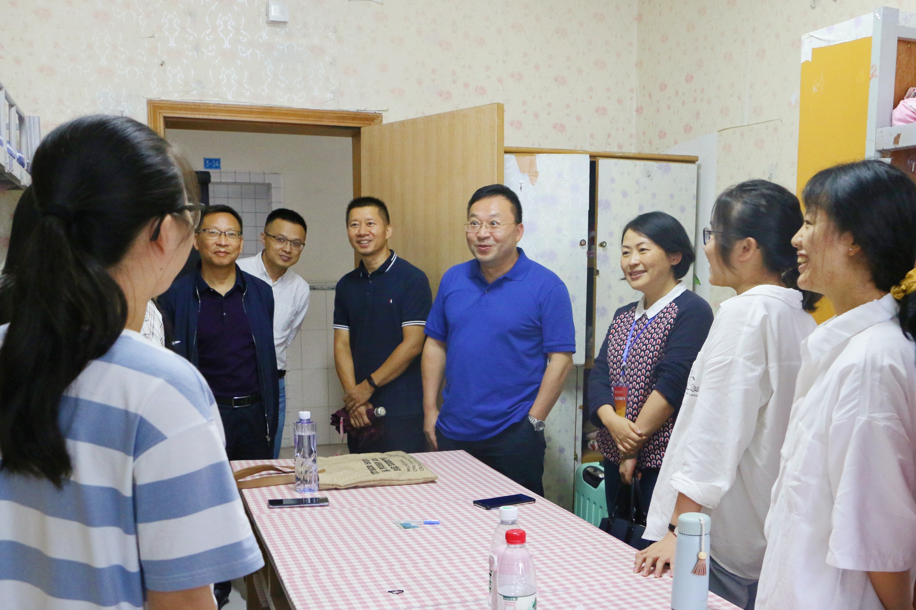 新学期伊始,为关心beat365官网2020级新同学住宿和生活情况,9月17日下午五时,学校党委常委、纪委书记罗茂带领文化与传媒学院全体领导班子和新生辅导员王宏梅,共同走访了兰苑等学生宿舍,慰问新同学。