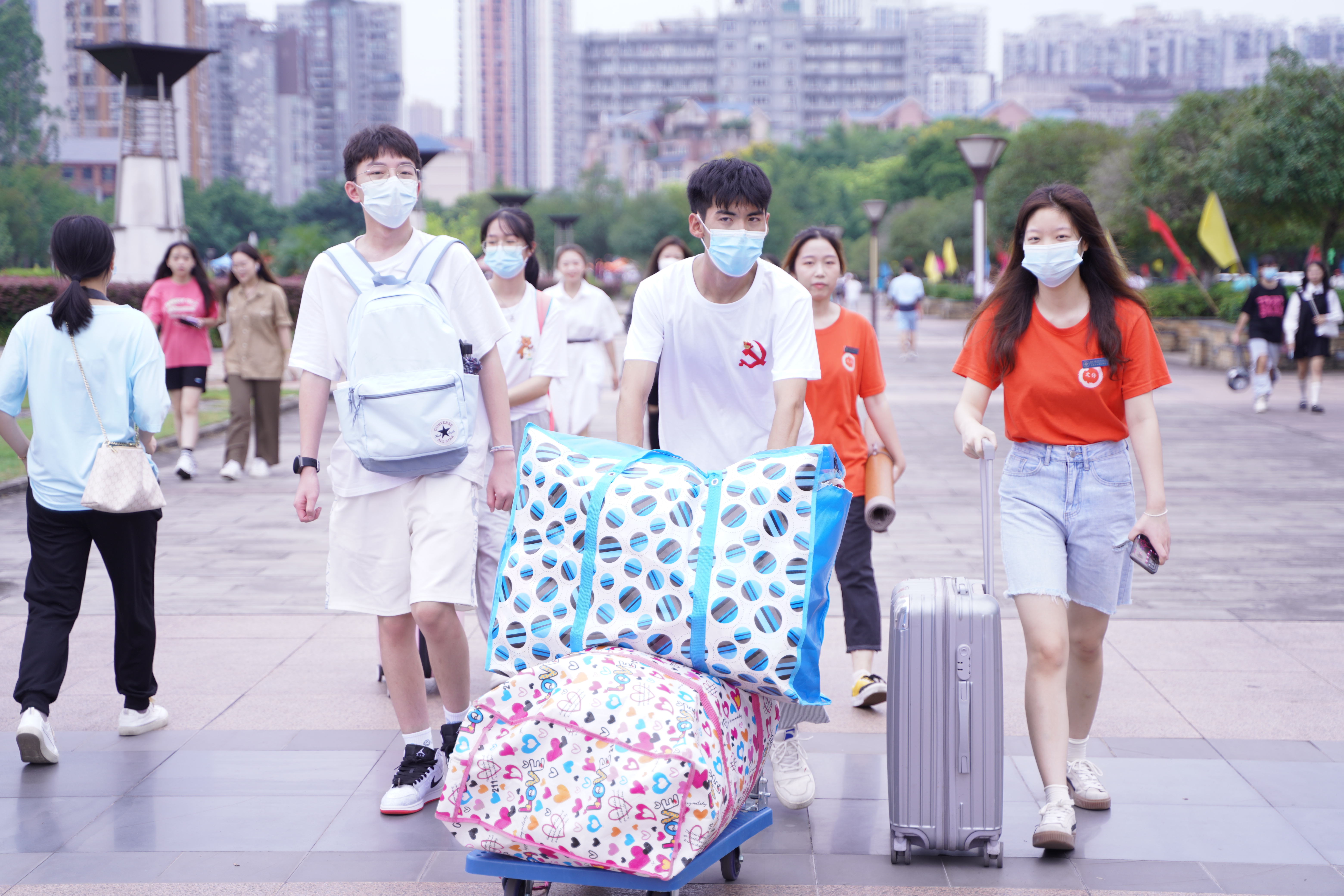 迎新工作如火如荼,到处都是忙碌的身影。学院设立了饮水供应点、休息点、打卡点等服务点。报到期间,学院领导与新生亲切交流,详细了解新生报到情况,叮嘱大家做好新冠病毒防护,解答新生相关问题。身穿文传文化衫的志愿者们坚守在迎新岗位上,不顾风雨,以饱满的精神状态投入到工作之中,奔波于校门、宿舍和报到点之间,为新生们搬运行李,指引报到路线,办理报到手续。学院精心设计了迎新手持牌,尽显专业特色,新生们纷纷拿着手持牌在文传打卡点拍照留念,表达对未来美好大学生活的期盼。志愿者们为文传新人送上满载深情祝福的明信卡,蕴含着学院的殷切关怀和学长学姐们的励志祝福,让他们感受到学院无微不至的关怀。