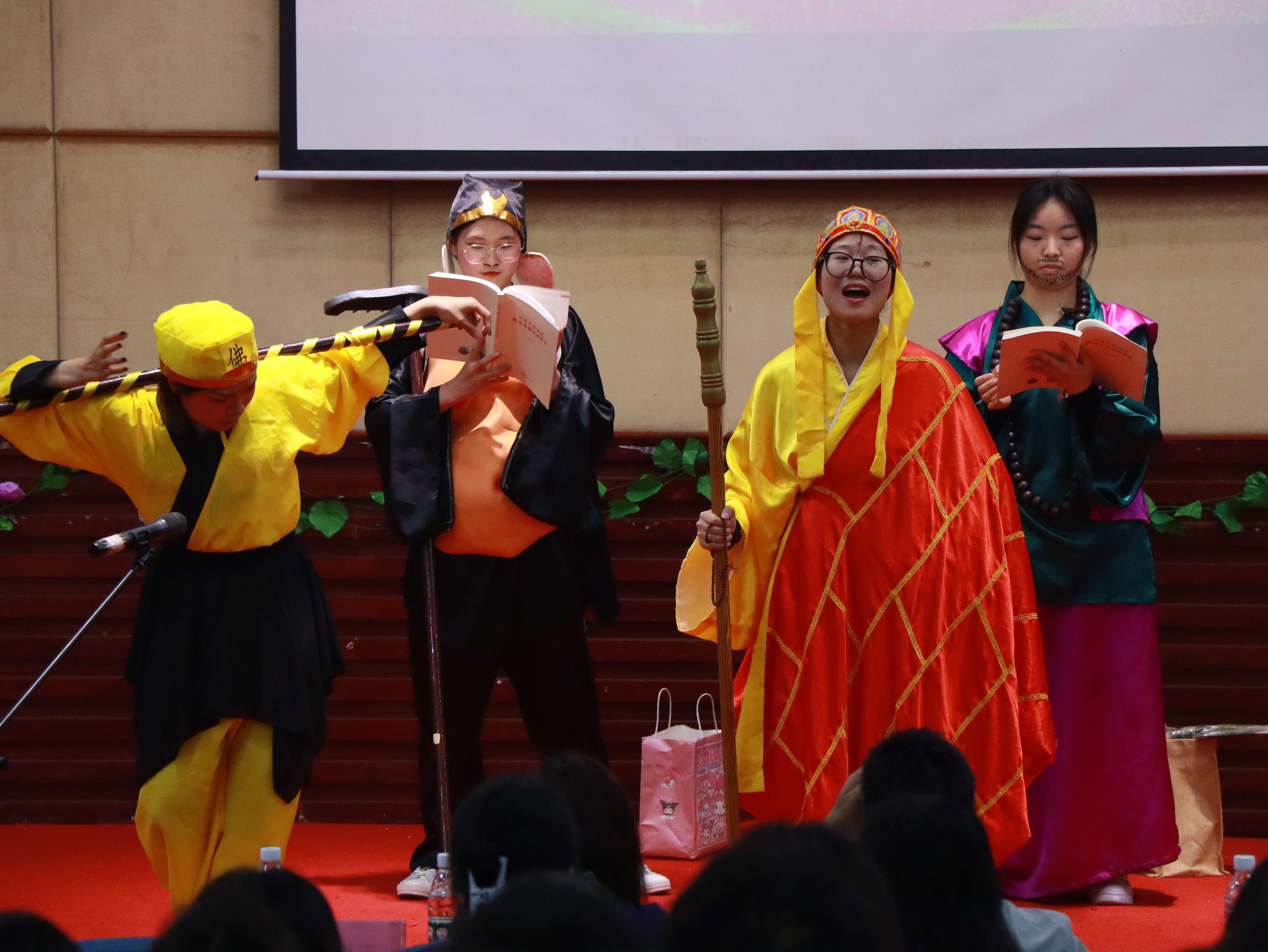本次活动以“学习二十大,永远跟党走,奋进新征程”为主题,具体包括学习贯彻习近平新时代中国特色社会主义思想、弘扬优秀传统文化、防诈骗、致敬警察等方面,进入决赛的8支队伍展开了精妙绝伦的表演。小品《榜样的力量》荣获一等奖;情景剧《皇帝与刺客》、相声《大学回忆录》荣获二等奖;情景剧《大话西游》、单人脱口秀《今夜秀》荣获三等奖。来自马克思主义学院的胡荻同学获得“最佳女演员”,教育学院的李帅同学获得“最佳男演员”,文化与传媒学院的陈世仙同学、郭行同学荣获“最佳指导老师”。