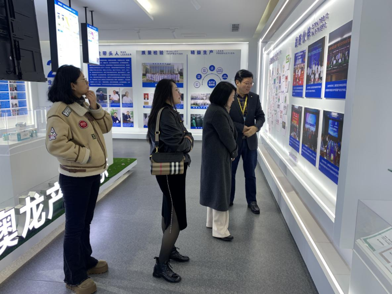 在重庆澳龙生物制品有限公司,李芹燕院长一行重点参观了质检研发中心及诊断制品生产车间,系统了解企业动物疫苗研发流程与技术创新成果。公司负责人表示,作为荣昌区高新技术企业代表,澳龙生物在品牌视觉设计、产品包装推广等领域亟需复合型人才支持,期待与学院在文化传播、数字设计等方向开展跨界合作。李芹燕院长指出,学院将依托设计学科优势,探索“生物科技+文化创意”特色课程模块,助力企业提升品牌附加值,同时为学生开辟多元化就业赛道。
