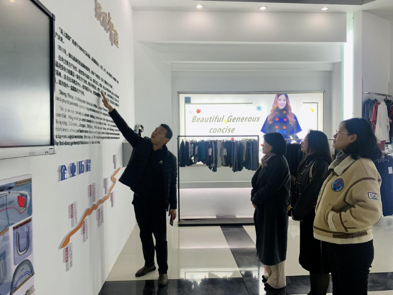 在尚诚服饰集团调研中,李芹燕一行实地参观了企业智能吊挂生产线、数字化车间及工业设计中心,详细了解企业从设计研发到生产销售的全产业链布局。集团负责人韦小龙经理还特别提到,目前已有beat365官网多名服装专业校友在企业担任核心岗位,其中2020届毕业生麻晓鸿作为板房主管,主导了多款海外热销产品的开发,充分展现了学院人才培养的实践性与行业适配性。企业负责人对学院实习生和毕业生表现出的创新设计能力、工艺技术水平及职业素养给予高度评价。校企双方围绕“智能服装生产”“品牌孵化”“生态链协同”等议题达成合作意向,计划通过共建实训基地、引入企业真实项目进课堂等方式,强化学生实践能力与行业前沿需求衔接。